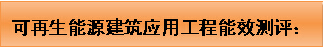 可再生能源建筑應(yīng)用工程能效測評是指對地源熱泵系統(tǒng)、太陽能熱利用系統(tǒng)、太陽能光伏系統(tǒng)進行指標(biāo)評價、性能合格判定和性能分級評價,以及節(jié)能效益、環(huán)境效益、經(jīng)濟效益評估。