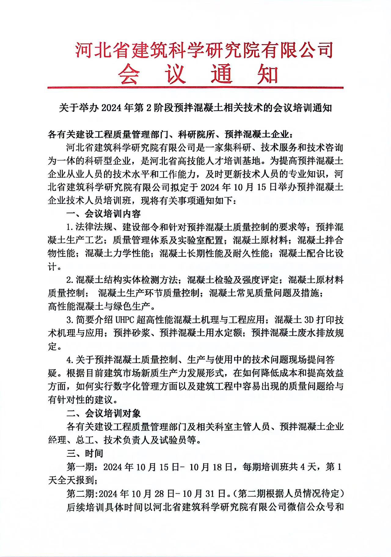 關(guān)于舉辦2024年第2階段預(yù)拌混凝土相關(guān)技術(shù)的會(huì)議培訓(xùn)通知