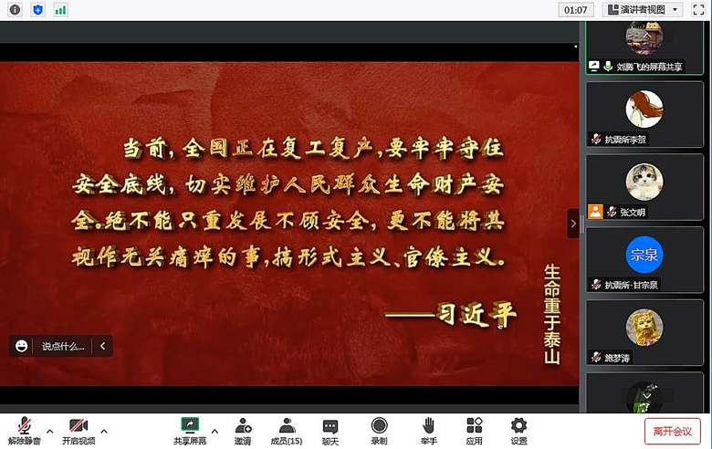 為深入學習貫徹習近平總書記關于安全生產(chǎn)的重要論述和重要指示精神,統(tǒng)籌發(fā)展和安全,切實加強職工安全生產(chǎn)意識,12月23日上午抗震所組織本部門職工通過線上方式集中學習了電視專題片《安全重于泰山》。