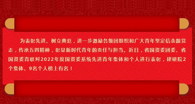【建研青年】喜報(bào)!建研院2個(gè)集體、9名個(gè)人榮獲省國(guó)資委表彰